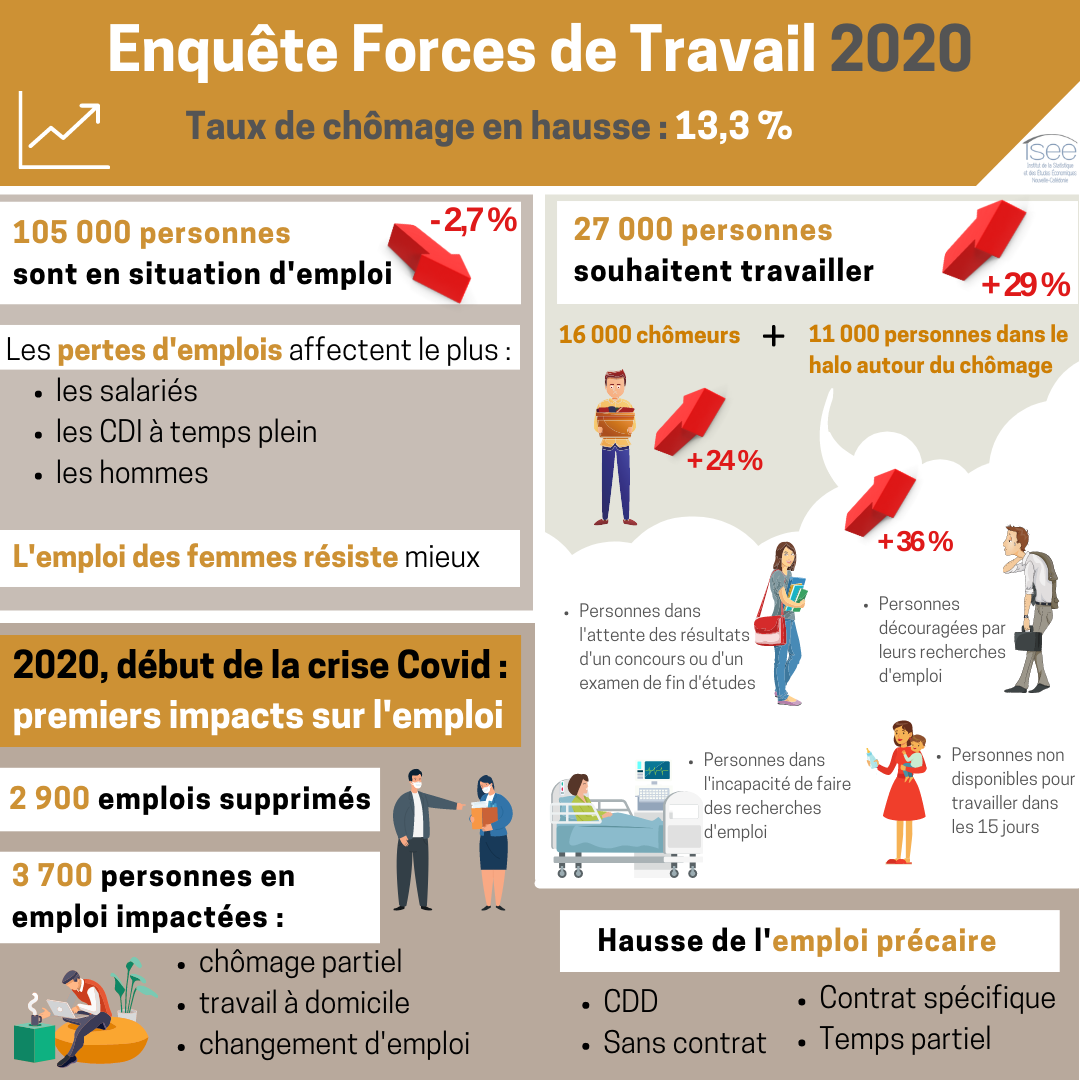 En Nouvelle Calédonie, les statistiques sont établies par l'IDC NC, à partir de l'ensemble des offres déposées auprès des services provinciaux de placement (SEF, Cap Emploi, Epefip).